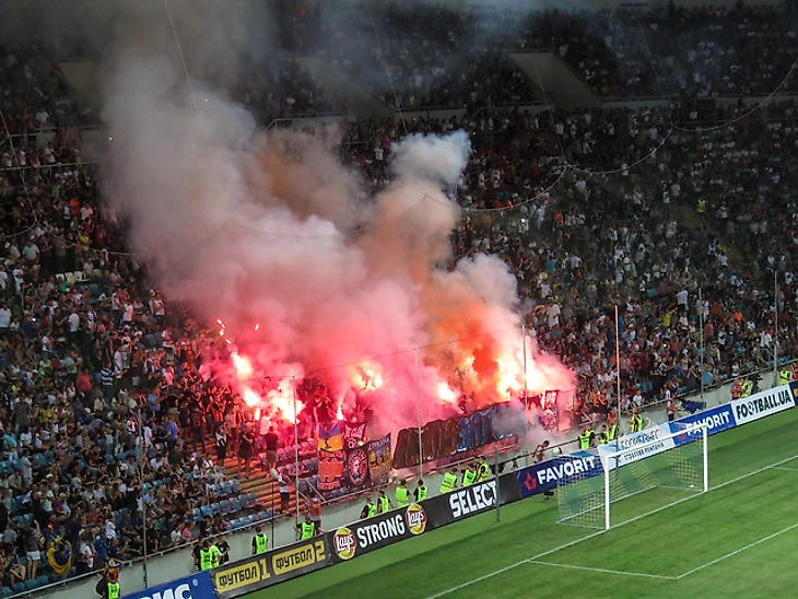 Небольшой видеообзор перфоманса и шизы на матче от фэнов киевлян: