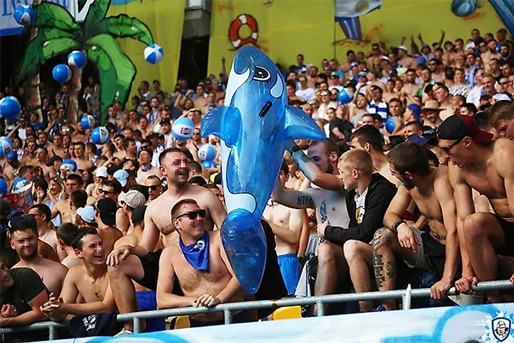 На этот раз в субботнем матче всё получилось гораздо веселее. Ультрас "Динамо" решили пофорсить пляжную тему на своей трибуне – и сделали это очень креативно!