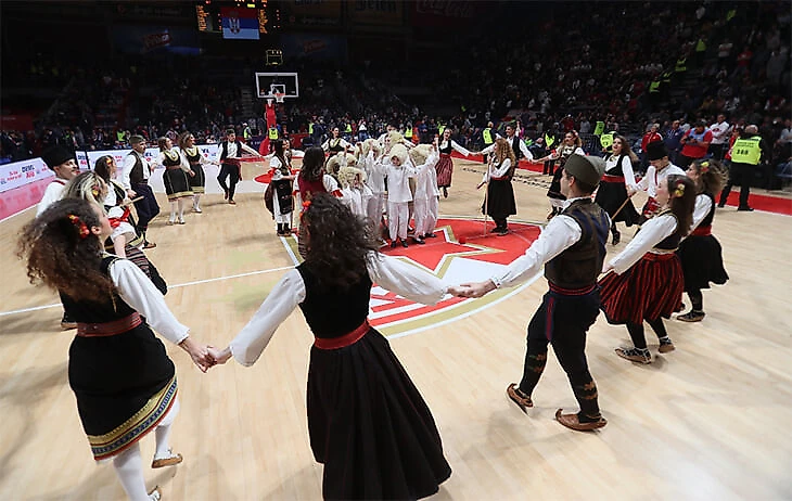 Затем оркестр исполнил сербскую народную песню «Видовдан» – также есть одноименный сербский праздник, который очень важен для страны, посвященный битве за Косово 28 июня 1389 года. Сегодня песня «Видовдан» символизирует патриотизм и дань к сербским традициям и сербской культуре. Не обошлось в этот вечер под сводами «Пионер Холла» и без «Катюши» – сербы очень часто исполняют мотив этой песни и на рядовых играх, а уж в день матча с российскими «Химками» было бы грехом обойти эту песню стороной.