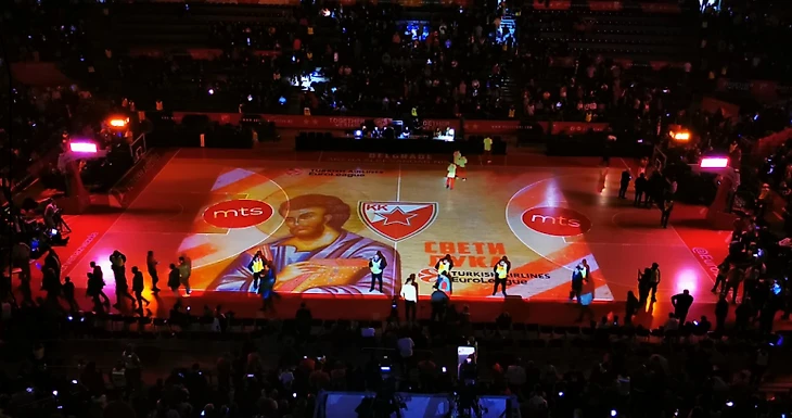 Непосредственно перед началом матча на паркете появились лики двух святых. Первым был Святой Лука – апостол от семидесяти, сподвижник апостола Павла. В православной и католической традициях считается первым иконописцем. Появление его изображение неспроста – день игры, 31 октября, считается одним из дней памяти Святого Луки в Православной церкви (2 других – в январе и апреле). Религиозный праздник Святого Луки чрезвычайно важен для сербского народа, а его изображение на площадке олицетворяло уважение к культуре и традициям сербов.
