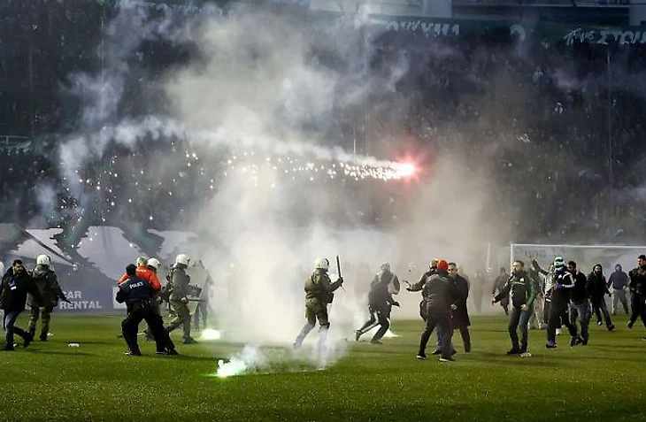 Греческие фанаты всегда отличались своим сверхгорячим темпераментом, и нередко это становилось большой проблемой для греческого футбола. Так, например, многие матчи прерывались или вовсе не были доиграны, а в 2015 году вообще дошло до того, что правительство страны приняло решение прервать чемпионат на неопределенный срок. Причиной этого стали беспорядки на стадионе во время матча «Панатинаикоса» и «Олимпиакоса», а также последующее заседание совета греческой футбольной лиги, где уже руководители двух клубов порывались надавать друг другу лещей. На самой игре в игрока «Олимпиакоса» Касами с трибуны прилетел файер, а на сотрудника тренерского штаба «Панатинаикоса» напали сотрудники службы безопасности «Олимпиакоса». Добавьте сюда болельщиков, которые пытались прорваться на поле, и полицию, которая пытается всё это остановить – и вы сможете представить тот хаос, что творился в февральский вечер 2015 года.