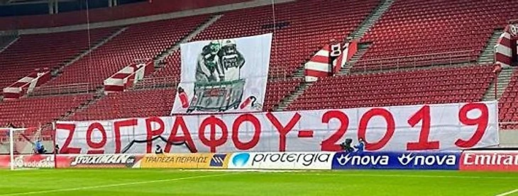 А уже на самой игре фэны «Оли» растянули небольшой перфоманс «Зографос-2019».