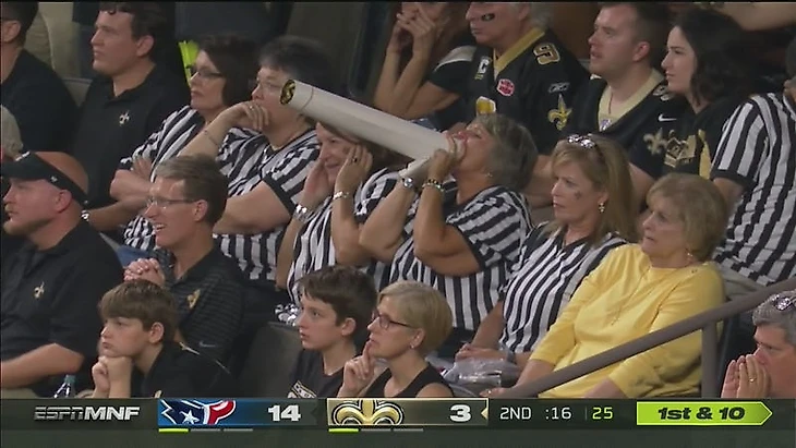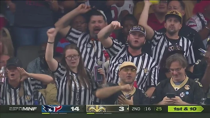 Так болельщики "Нью-Орлеан Сэйнтс" выразили свое недовольство и возмущение судейской ошибкой в полуфинальном матче прошлого сезона против "Лос-Анджелес Рэмс", когда они должны были побеждать в основное время, но из-за ошибки судьи матч перешел в овертайм, где они уступили дорогу в финал.