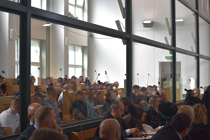 Обвиняемые по делу "Psycho Fans" на суде находились в специальной в клетке-аквариуме и сидели вперемешку с полицейским конвоем.