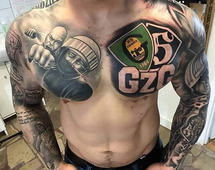 Бригадная татуировка хулигана "ГКС" (Катовице) из группировки "Persona Non Grata".