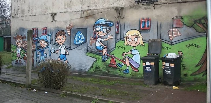 Граффити фанатов познаньского "Леха" с логотипом канала "TVN". Работа посвящена противостоянию с кибицами гданьской "Лехии", которые обвинили "лехитов" в краже их перфоманса при содействии полиции и охраны стадиона в Познане – подробно о той истории вы могли читать ранее в моем блоге ТУТ.