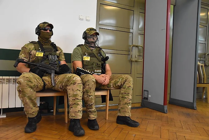 Во время судебных слушаний в зале также находились бойцы спецназа и сотрудники по борьбе с терроризмом.