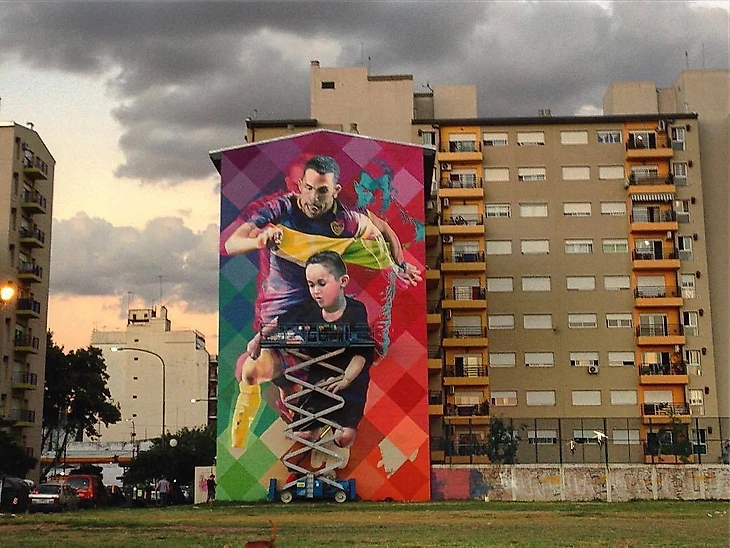 Позднее, уже ближе к ЧМ-2018, Мартин Рон по заказу городского правительства нарисовал в районе Ла-Бока ещё одно огромное изображение с Тевесом: