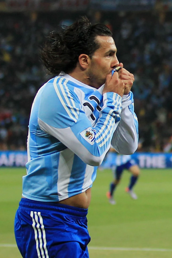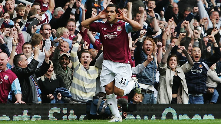 Когда в очной игре "Вест Хэм" победил "МЮ" 1:0, а автором единственного мяча оказался как раз-таки Тевес, сэр Алекс Фергюсон окончательно убедился в необходимости приобретения аргентинца. Причём это не было спонтанным решением – шотландец давно следил за Карлитосом, а впервые в деле его увидел в августе 2002 года, когда "Бока" приехала на "Олд Траффорд" ради товарищеского матча. Тевес в том мачте не забил, "МЮ" победил 2:0 благодаря дублю Нистелроя, но аргентинец в целом был хорош и выделялся в составе гостей. Спустя 5 лет он доказал свой уровень и в Аргентине, и в Бразилии, и теперь в Англии, поэтому манкунианцев даже не испугала ни мутная схема владения прав на игрока (права на Тевеса принадлежали частной компании "MSI", владельцем которой являлся Киа Джурабчиан), ни категорический отказ в трансфере от лондонцев – дело дошло до суда, в результате которого "Вест Хэму" пришлось отпустить своего футболиста всего лишь за 2 миллиона фунтов. При этом на счёт лично Джурабчиана упало ещё 10 миллионов фунтов. И пусть это был не полноценный трансфер, а лишь аренда на 2 года, Тевес всё равно считался полноценным футболистом "Манчестера", где составил убойное трио с Руни и Криштиану. На фото он празднует гол в ворота "Тоттенхэма" в Кубке Англии – в том матче "красные дьяволы" победили 3:1, но уже в следующем раунде сенсационно вылетели дома от "Портсмута", которые в последствии и возьмет этот трофей.