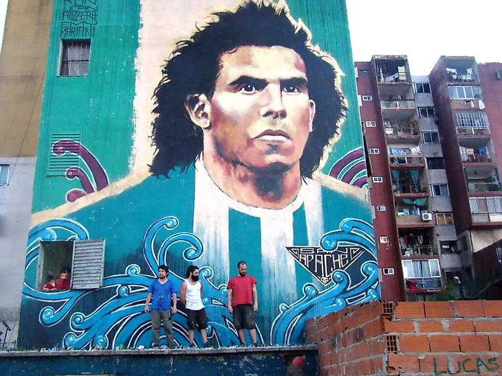 Ровно 10 лет назад мир узнал имя уличного художника Мартина Рона – это произошло после того, как Мартин, вместе с двумя коллегами по цеху, Лином Фриззера и Эми Мариани, нарисовали огромное граффити в честь Карлоса Тевеса в его родном районе Эхерсито-де-Лос-Андес, более известном как Фуэрте-Апач. Отсюда и появилось прозвище Тевеса "Эль Апач".