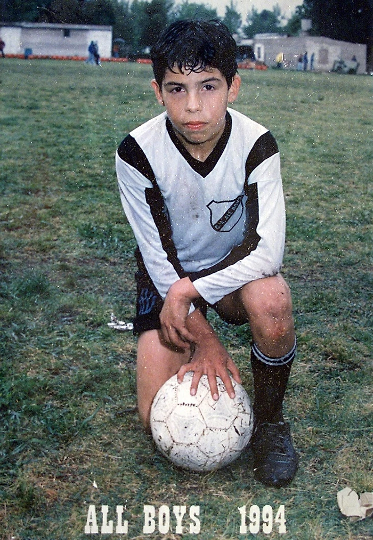 1994 год. 10-летний Тевес позирует с мячом в футболке детской команды клуба "Олл Бойз", где он и делал первые шаги в футболе.