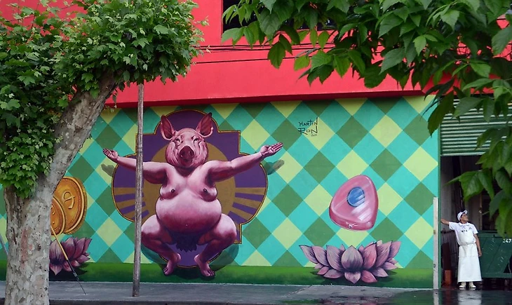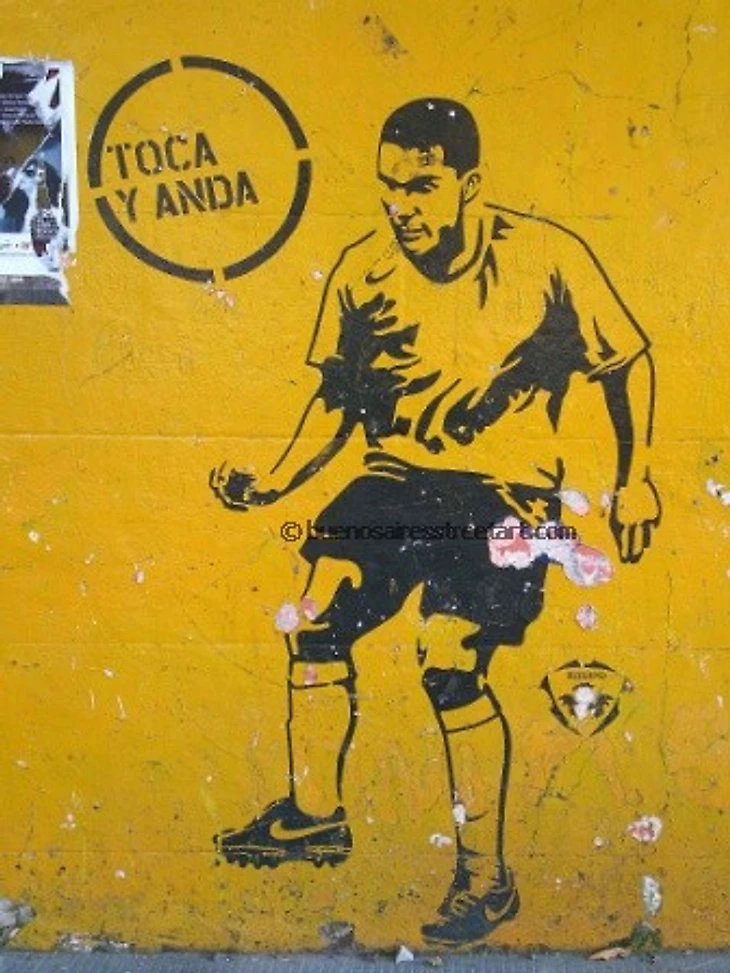 Тогда местные районные власти организовали проект по повышению социального статуса неблагополучного района и предложили граффитчикам украсить стену дома, где жил Карлос Тевес – на тот момент уже суперзвезда мирового футбола.