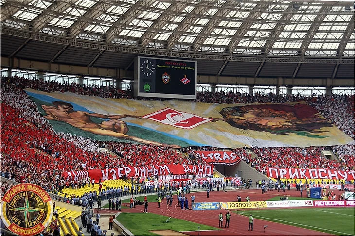 Ну а отечественные любители футбола со стажем могут помнить дерби «ЦСКА»—«Спартак» 15-летней давности, когда красно-белые презентовали хорео «Лишь избранным дано прикоснуться к шедевру». Но тогда, по сути, общественность не должна была увидеть этот баннер, ведь в ночь перед дерби, когда спартаковские художники дорисовывали полотно, их место расположения вычислили хулиганы армейцев, которые неожиданно туда нагрянули, избили всех, кто там был, после чего облили баннер горючей жидкостью и сожгли его. Вернее они думали, что сожгли, хотя по факту прожгли в нем огромную полосу, что, учитывая тот факт, что до матча оставалось буквально пол суток, было равносильно полному сожжению.