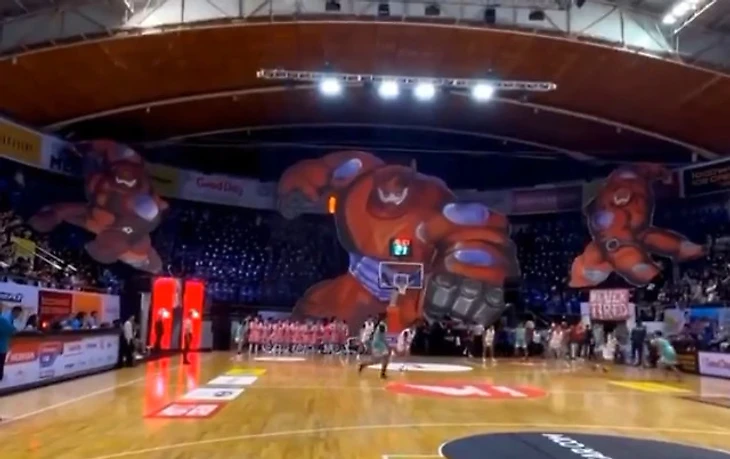А вот, например, перфоманс от них же, но уже на матче баскетбольной команды.