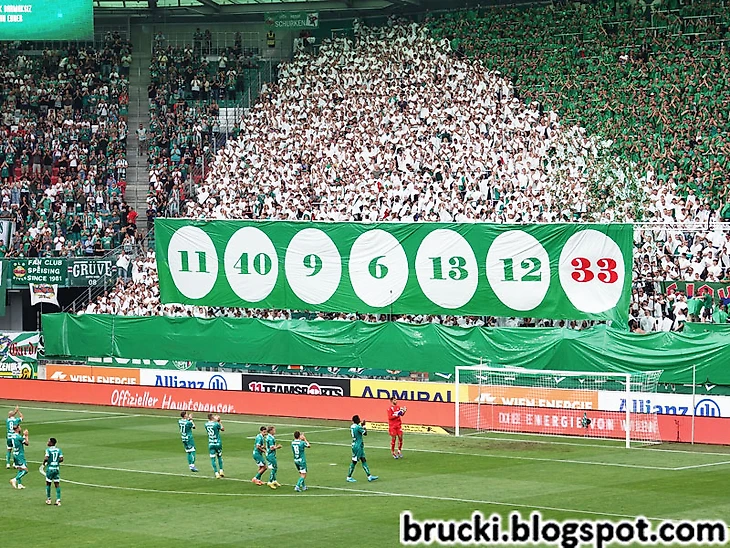 Но, как это обычно и бывает в таких лотереях, в конце еще вытаскивают дополнительный номер. На этот раз им стал шар под номером 33 — так ультрас «Рапида» хотели показать, что верят в чемпионство в этом сезоне, которое станет для их клуба 33-м в истории. Примечательно, что один из имеющихся сегодня в активе «Рапида» 32 чемпионских титулов, является титул чемпиона Германии — да-да, в сезоне 1940/1941 из-за аннексии Австрии в состав Германии проводился совместный чемпионат этих двух стран.