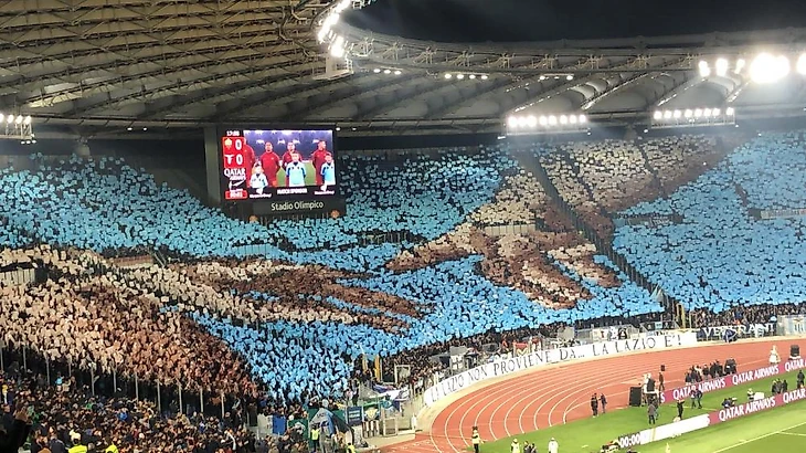 А вот версия от ультрас «Лацио» на дерби против «Ромы»: «орлы», правда, использовали в своем перфомансе лишь фрагмент фрески.