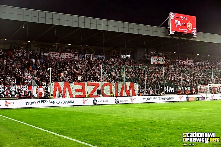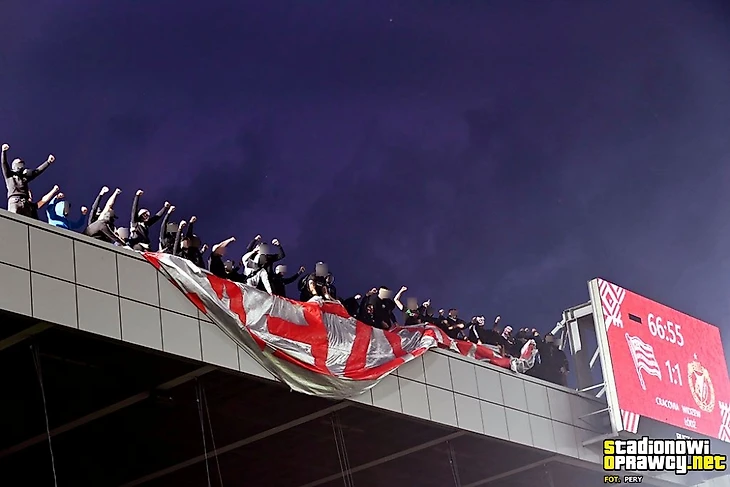 Чего не скажешь о самом матче — «Краковия» забила быстрый гол, но «Видзев» сумел не только отыграться, но и вырвать победу в самой концовке встречи, дважды забив за последние 5 минут. Но, думаю, довольными в любом случае остались все 11.933 болельщика, посетивших эту игру. Одни — гостевой победой, а другие — уничтожением вражеского баннера.