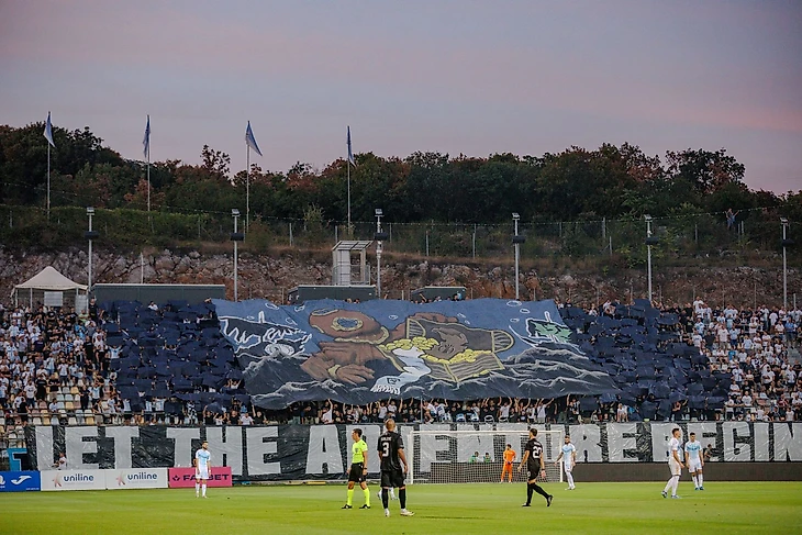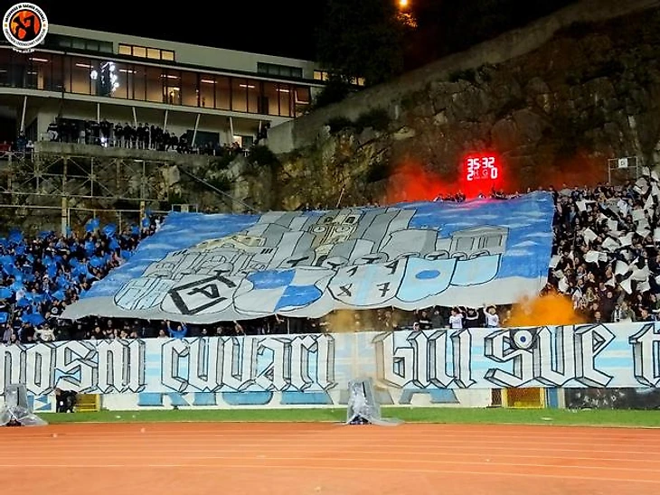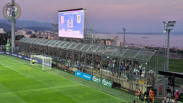 Так или иначе, стадион «Руевица» — теперь домашний для главной «Риеки» и «Олимпию» она принимала как раз там. Ультрас-группа «Армада» подготовила к этой игре красивый перфоманс на морскую тематику «Пусть приключение начнется!», где человек в водолазном скафандре обнаруживает на дне моря сундук с золотом, а среди драгоценностей мы видим и значок Лиги Конференций.