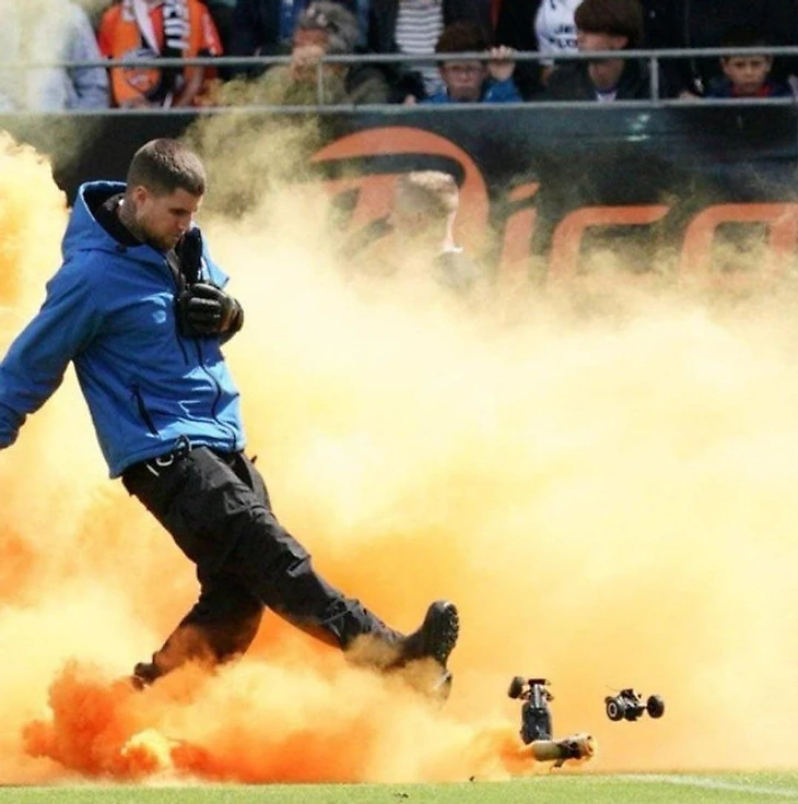 В добавок к физической расправе, ультрас решили заодно еще и проучить телевизионщиков, забросав поле оранжевыми дымовыми шашками (в цветах «Лорьяна»), из-за чего матч был прерван на несколько минут.