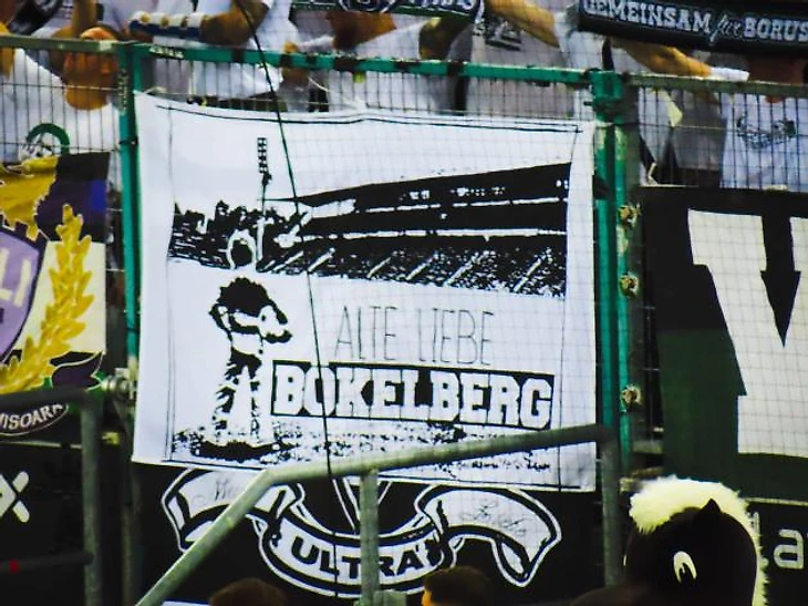 «Здесь родились «жеребята», перешли в Бундеслигу и выиграли трофей Нижнего Рейна, забив свои лучшие голы. Старая любовь «Бекельберг»!» — гласил лозунг на крутом хорео, растянувшимся на 2 трибуны стадиона «Боруссия-Парк». Посвящен перфоманс был старому стадиону «Бекельбергштадион» — он был построен в 1960 году на месте старого стадиона «Де Куль», на котором команда выступала с 1914 года. «Де Куль» стал первым официальным стадионом «Боруссии», основанной в 1900 году. «Бекельбергштадион» для своих лет был довольно современной ареной, тем более его несколько раз реконструировали, добавив второй ярус и крышу. На начало 90-х годов была запланирована полная перестройка стадиона, однако из-за массовых протестов жителей этого района она была сначала заморожена, а затем и вовсе отменена. В итоге в 2004 году гладбахцы перебрались на новенький стадион «Боруссия-Парк» в районе Рейндален-Ланд, а «Бекельбергштадион» был снесен.