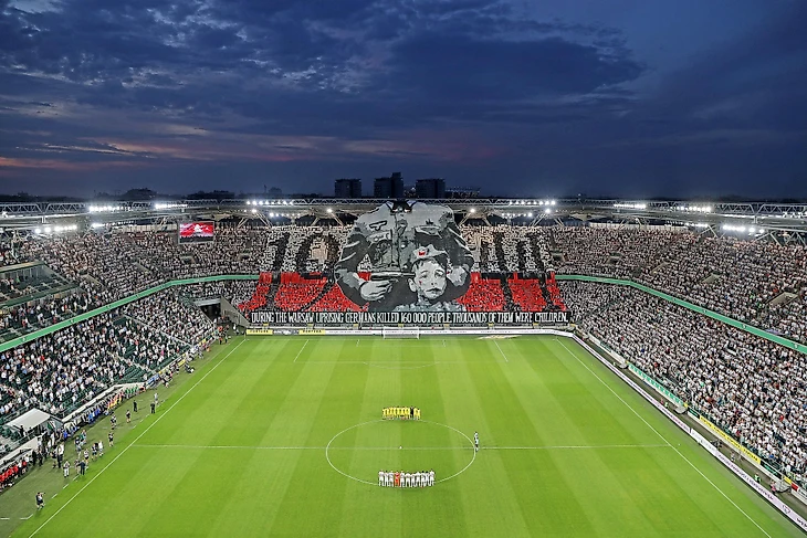 Ультрас «Легии» каждый год почитают жертв тех событий, а наиболее их ярким перфомансом по этому поводу, пожалуй, стало хорео «Во время варшавского восстания немцы убили 160.000 человек, тысячи из них были детьми!» несколько лет назад, сделанное по мотивам советского фильма «Иди и смотри». Напомню, что тогда восстание было подавлено, а 84% города в последствии было уничтожено. Всего же за время войны погибло 800 тысяч польской столицы, из которых 160 тысяч погибли как раз во время того восстания.