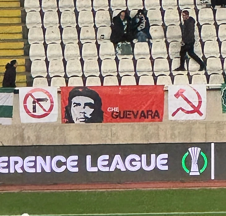 Помимо перфоманса, уже во время игры ультрас «Омонии» продолжили троллить своих польских коллег (которых, к слову, не было на стадионе) и более прямолинейными методами – например, вывешивая баннеры с известными сторонниками коммунизма Карлом Марксом и Владимиром Лениным, а также Че Геваррой, изображение которого используют сторонники левых взглядов по всему миру (как фанаты французского «Ред Стара», хотя у них есть свой символ – Рино Делла Негра, который не сыграл за него ни минуты, но все равно стал культовой фигурой).