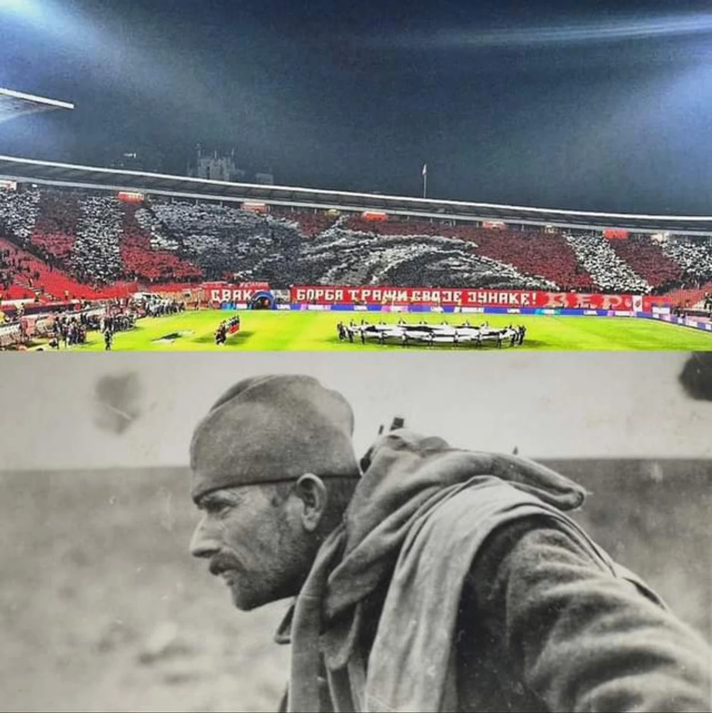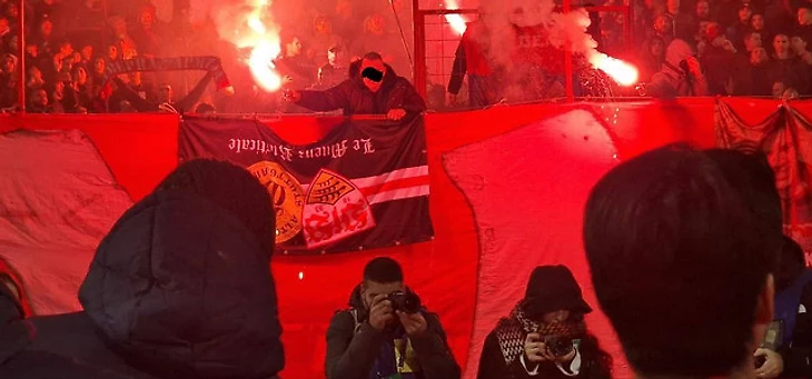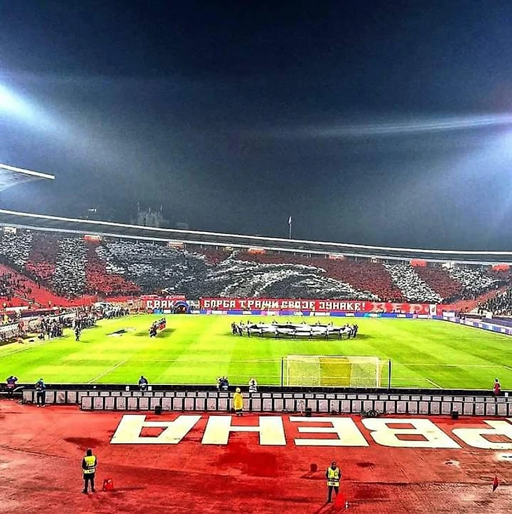 Остаемся в Лиге Чемпионов, но перемещаемся в Белград, где сербская «Црвена Звезда», не набравшая к тому моменту ни одного очка, принимала в родных стенах немецкий «Штутгарт». Данный матч для красно-белых был последней возможностью зацепиться за зону плей-офф, поэтому группировка «Делие» подготовила масштабное хорео «Каждая борьба требует своих героев!».