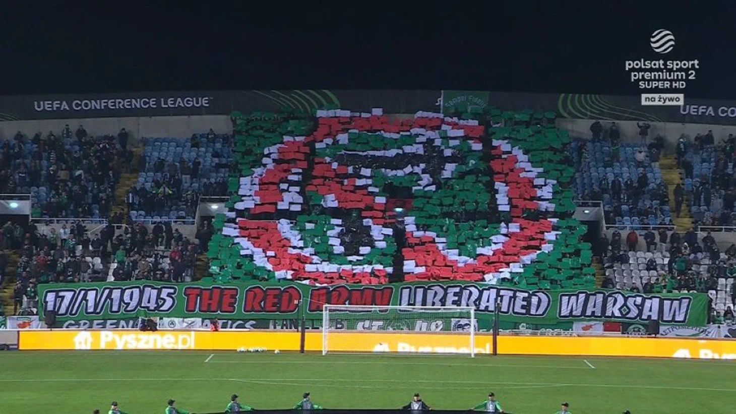 Ультрас «Омонии», известные своими левыми взглядами, подготовили к этой игре специальный перфоманс, в котором плашками выложили запрет поворота направо и подписью «17.01.1945. Красная Армия освободила Варшаву».