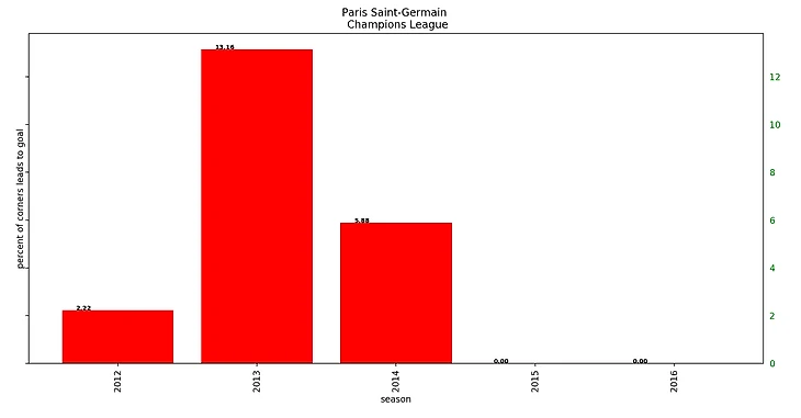 У ПСЖ нечеловечески огромный процент успешных угловых - 13% (sic!) - в ЛЧ в 2013\14. Пожалуй, одна из лучших статистик.
