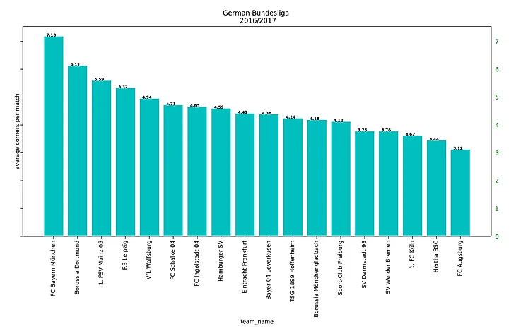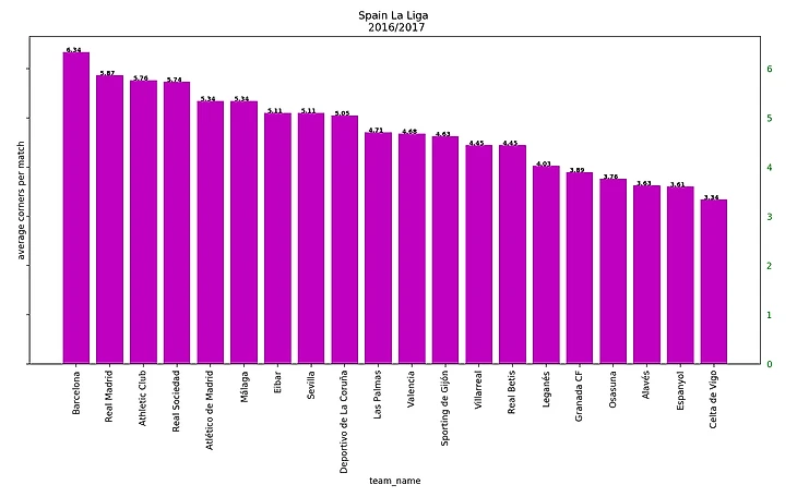 В среднем команда подает 5.1 угловой за матч. Вот данные по основным лигам за последний сезон