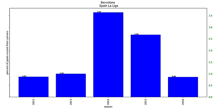У Барселоны один из самых низких процентов (3 сезона < 1%). При Луисе Энрике (с сезона 2014\15) падал из года в год (до значения 0.86% - самый минимум среди всех клубов)
