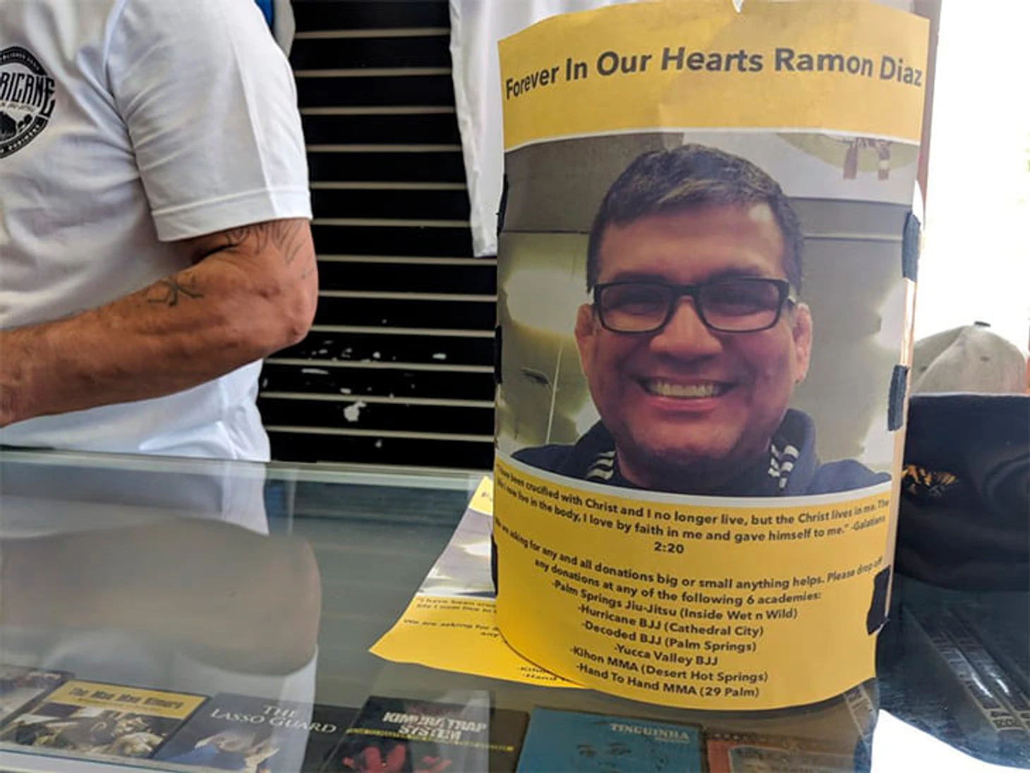 После вечерней тренировки в академии Palm Springs Jiu-Jitsu Диас не стал снимать ги (кимоно для джиу-джитсу – Sports.ru) и пошел домой, оставив повседневную одежду в сумке. Соседи Диаса услышали выстрел в 21:30 и немедленно вызвали полицию.