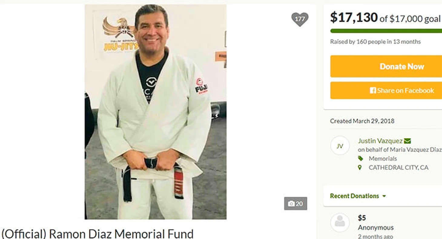 Друзья Диаса в ночь после убийства тренера запустили с помощью краудфандинга сбор денег на похороны и собрали нужные 17 тысяч долларов всего за три часа.