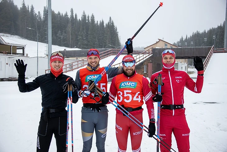 С самого утра снежная трасса Центра зимних видов спорта имени А.В. Филипенко заполнена олимпийскими чемпионами: Александр Большунов, Наталья Непряева, Денис Спицов, Алексей Червоткин, Сергей Устюгов в прекрасном настроении пробежали десятки тренировочных километров.