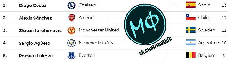 Далее следует Алексис Санчес благодаря которому Арсенал показывает достаточно хорошие результаты (не принимая во внимание две последние игры). Забил он один мяч меньше Диего, но отдал на один ассист больше. Паритет между ребятами сохраняется (по кол-ву набранных очков "гол+пас").
