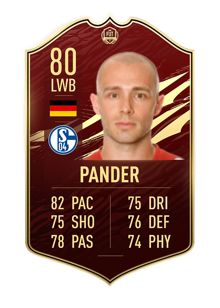 За 10 лет только один левый защитник достиг рейтинга 80 и попал в этот состав. Воспитанник клуба играл на профессиональном уровне только за Шальке и Ганновер. Пандер считался одним из самых талантливых фланговых защитников Германии, но постоянные травмы колена его постоянно останавливали. Тем не менее, он сыграл 2 матча за сборную и в первом забил победный гол против Англии ударом с 25 метров.