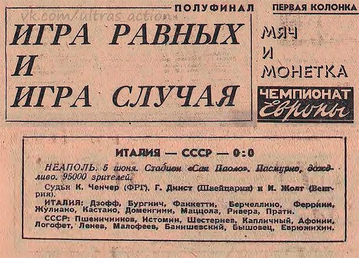 50 лет назад сборная СССР осталась без финала Евро. Проиграли по монетке