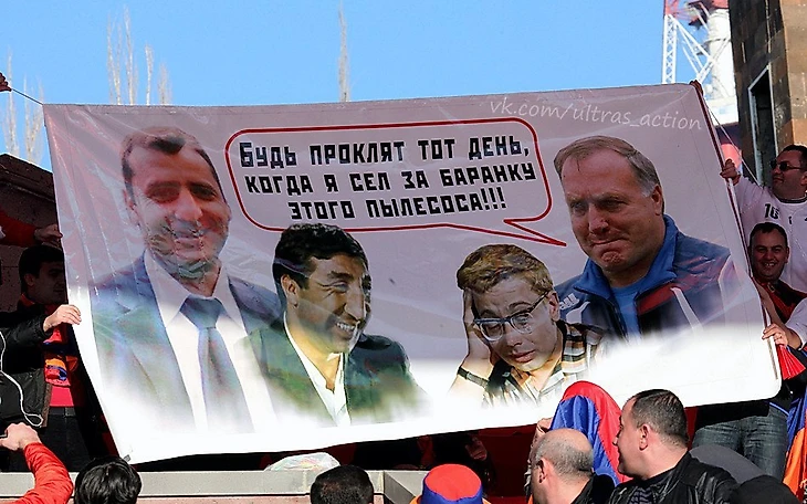 Вообще, фильмы Гайдая нередко всплывают в творческих акциях любителей футбола с пост-советского пространства. Вот ироничный баннер болельщиков сборной Армении на матче отборочного турнира Евро-2012 против сборной России. Очевидна отсылка к картине «Кавказская пленница, или новые приключения Шурика»