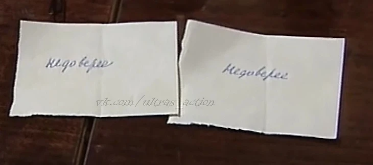 Подведение итогов тайного голосования завершилось еще большим скандалом, чем матч «Динамо» – «Алания». В опечатанном конверте импровизированных бюллетеней оказалось больше, чем самих проголосовавших, а среди неровно нарезанных листов бумаги лежали два голоса (обратите внимание на одинаковый почерк): «НЕДОВЕРЯЮ».