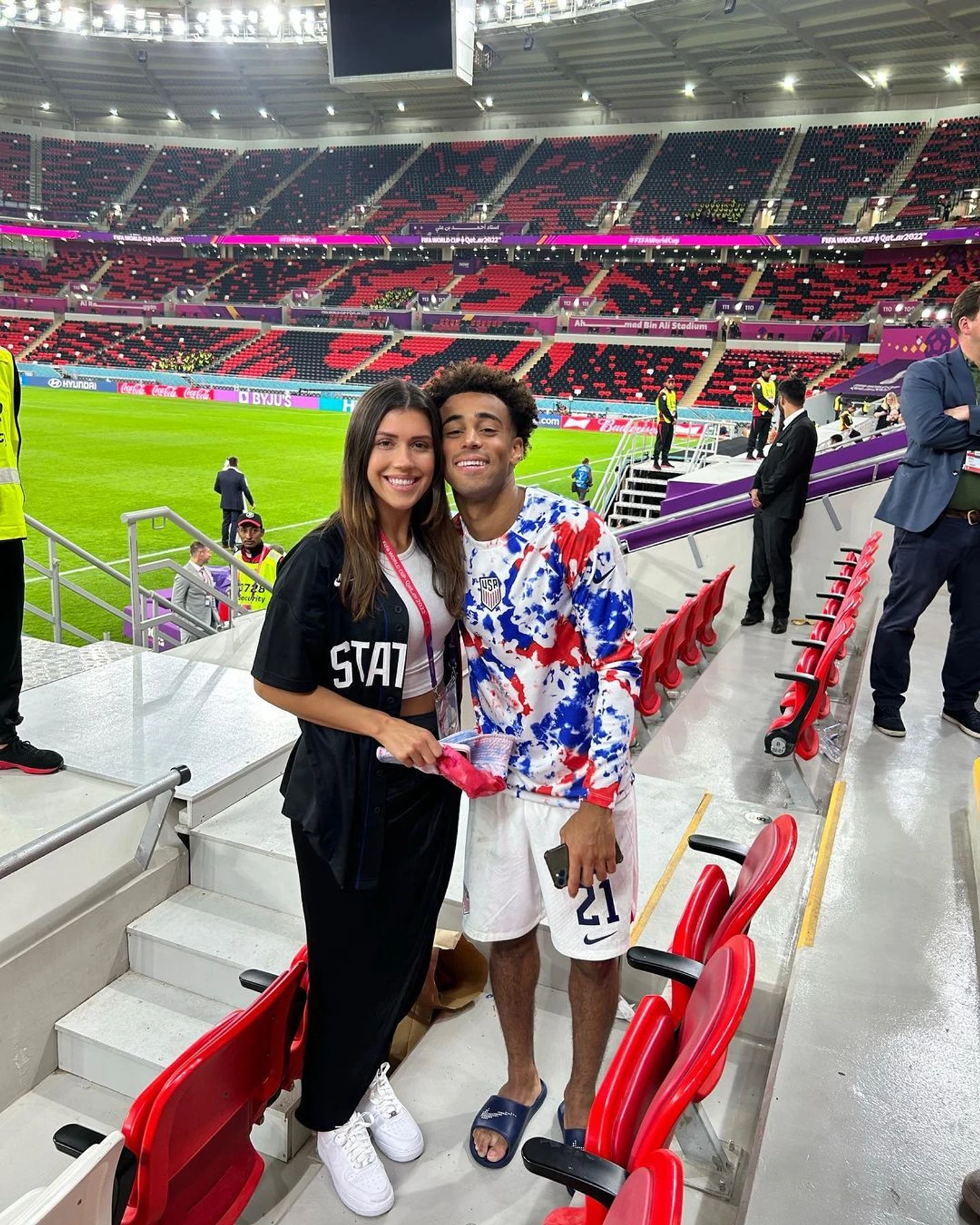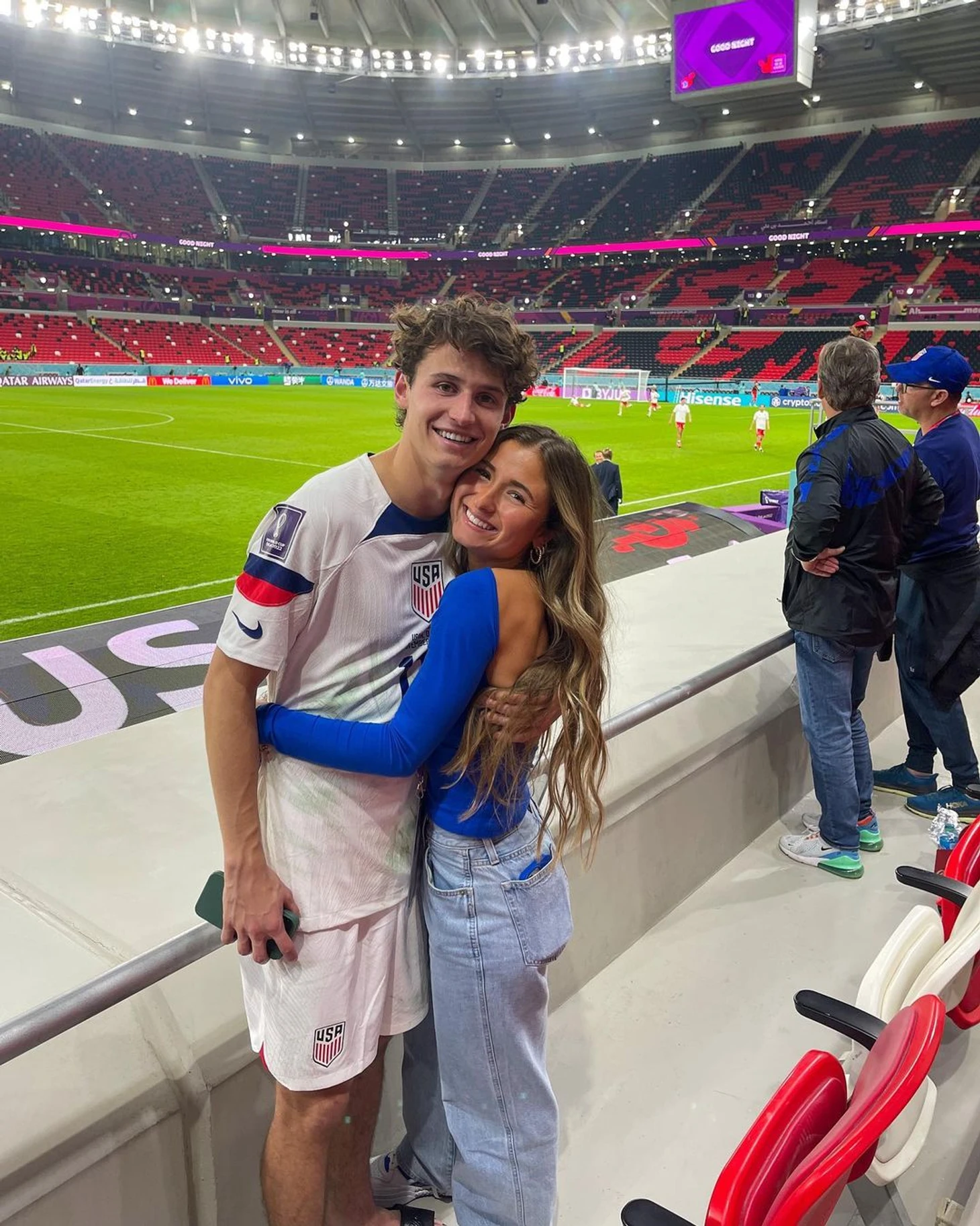 Его одноклубник по «Лидсу» Бренден Ааронсон тоже привез в Катар того, кто улыбался ему с трибуны.