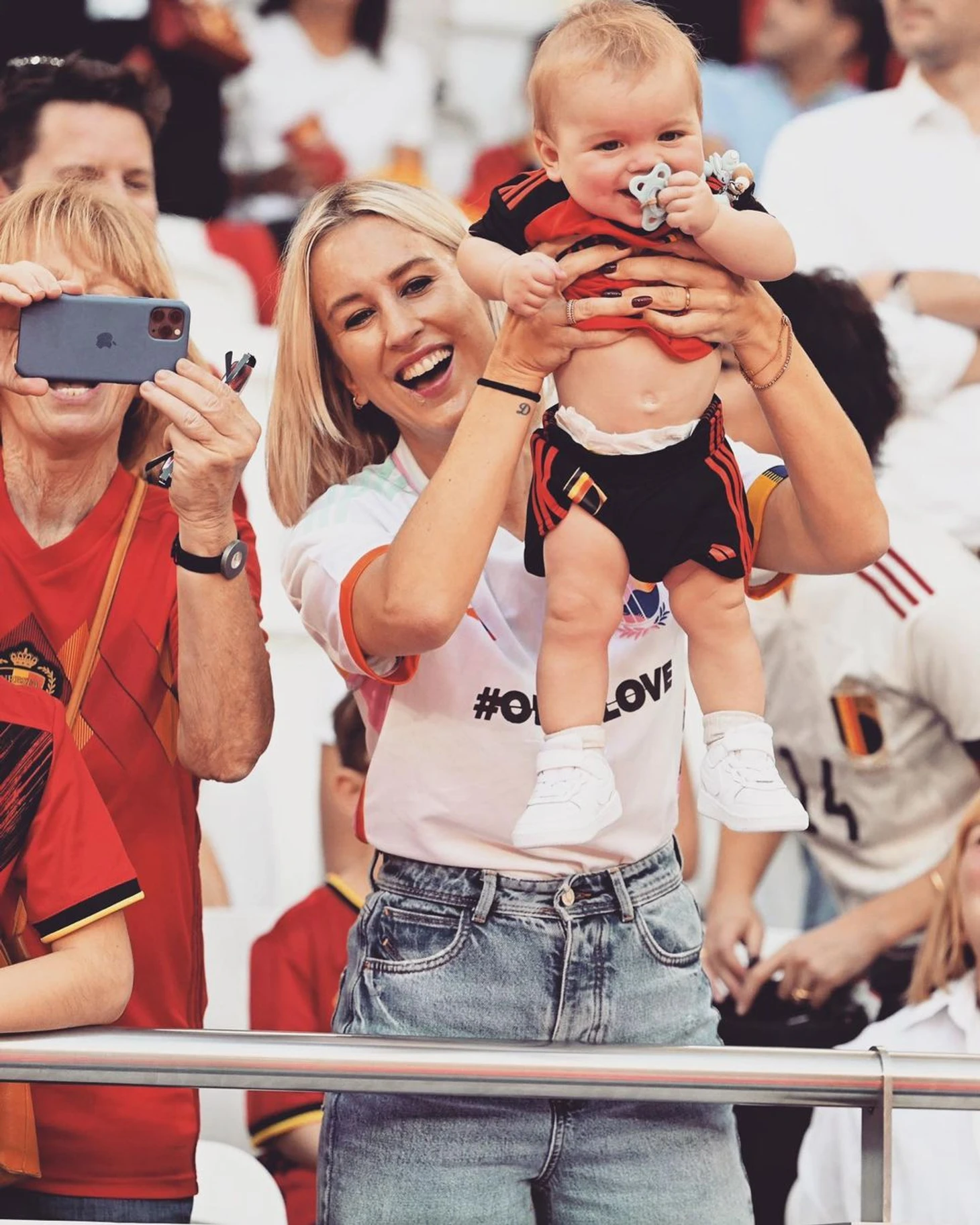 Жена Кевина Де Брюйне Мишель вместе с ребенком наблюдала за промахами Лукаку в игре с Хорватией.