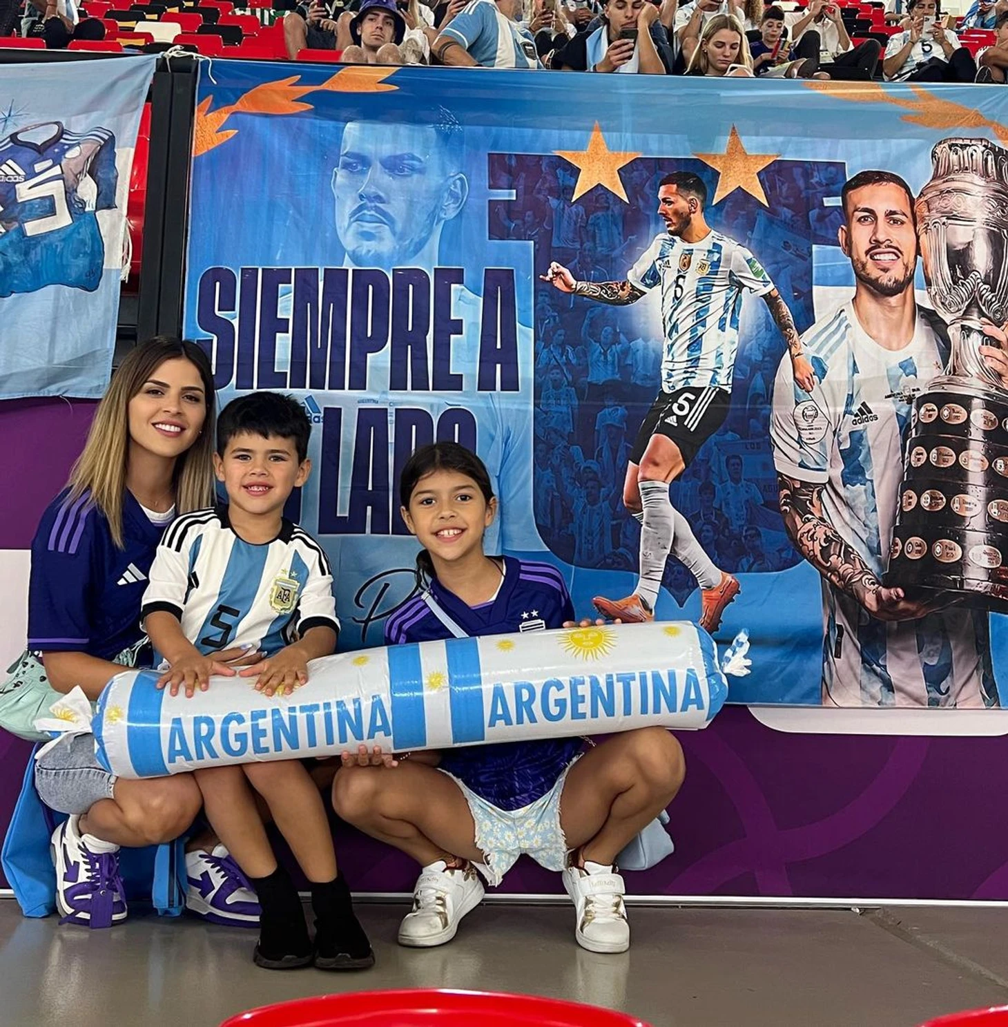 Камила Паредес, маленькие Паредесы и баннер с Леандро Паредесом.