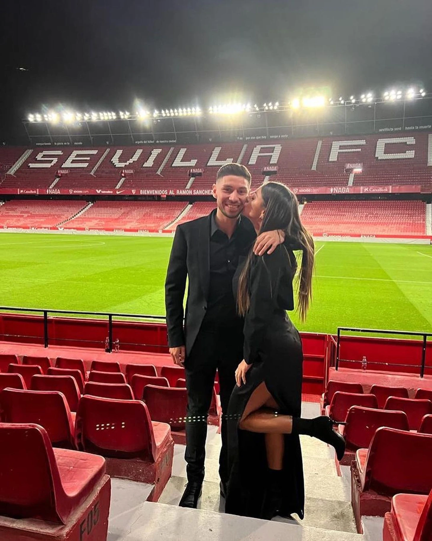 Карина и Гонсало вместе с 2019 года. Тогда защитник еще играл за родной «Ривер Плейт»: в Буэнос-Айресе-то пара и познакомилась. Сейчас влюбленные живут в Севилье: летом 2021-го аргентинец подписал контракт с местным красно-белым клубом.