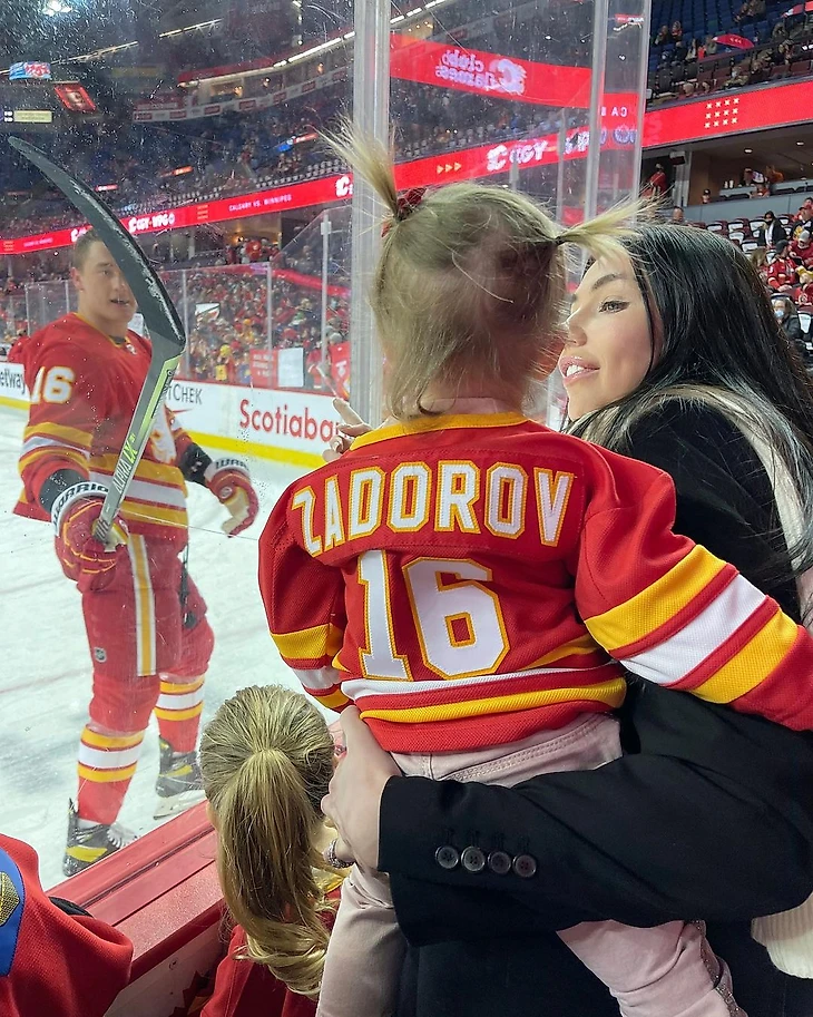 Александра – жена защитника «Калгари» Никиты Задорова. Он сделал ей предложение, подарив кольцо за 50 долларов