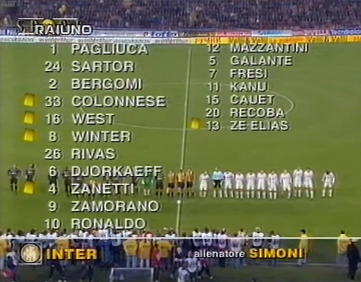 Первый матч с «Интертом» состоялся на стадионе «Сан-Сиро». Состав миланцев – просто мощь!