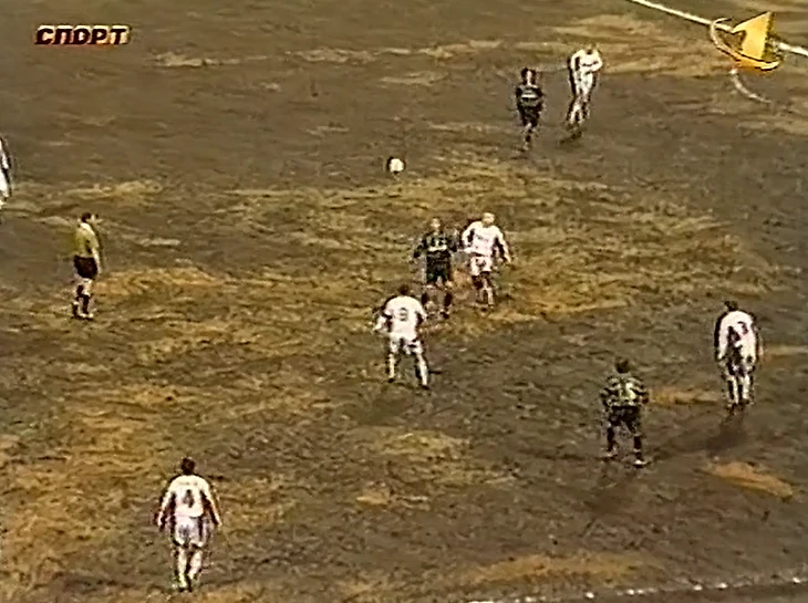 Сейчас сложно представить, что игра проходила в таких условиях, пока в Москве в этот момент сверкали новые 82-тысячные «Лужники». Но они были без нормального газона. Так что полуфинал евротурнира проводился вот в таких условиях:
