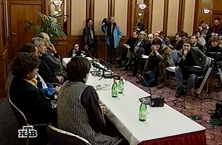 Вот такой антураж был на пресс-конференции – тесная комната, много проводов, ковер на полу: