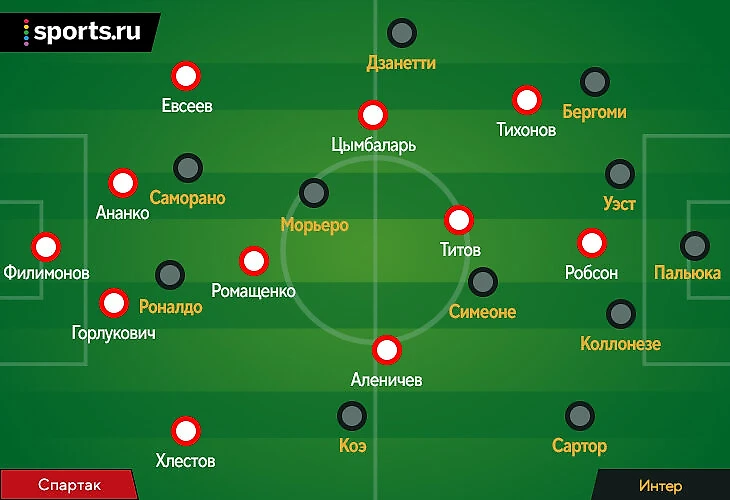 Но обидная ошибка перед самым перерывом вывела «Интер» вперед по сумме двух матчей – Роналдо точно пробил после отскоков. «Спартак» снова пропустил в конце тайма.