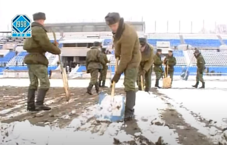 Директор стадиона Олег Точелович рассказал, что с военными связались сразу же – выделили 500 человек. Работал и подогрев – так пытались подсушить газон.