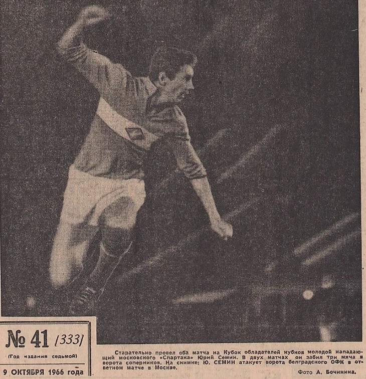 Команда Николая Гуляева победила 3:1. Первые спартаковские голы в еврокубках забил Юрий Семин, отметившийся дублем уже к 16-й минуте. Да-да, Юрий Павлович Семин!